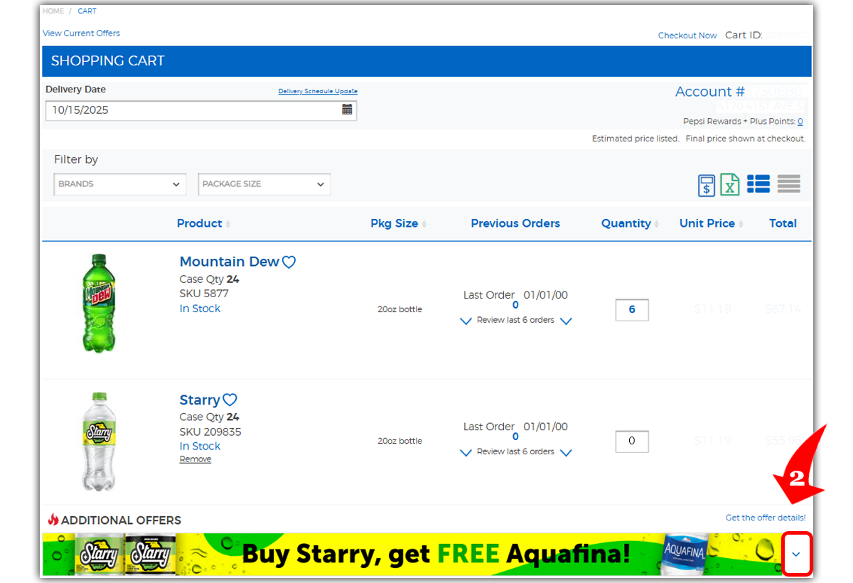 Scroll to the bottom of your cart and select the dropdown arrow to view and add the offer to your cart