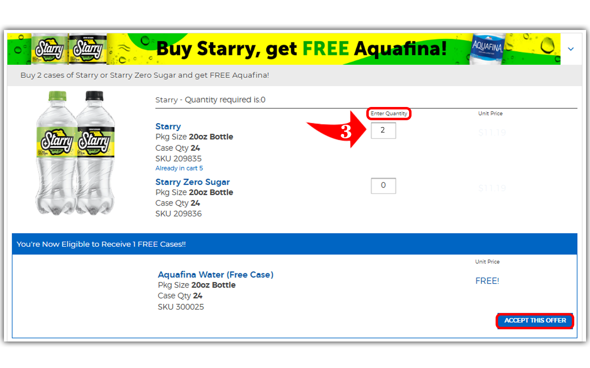 Enter the desired quantities and select 'ACCEPT THIS OFFER'