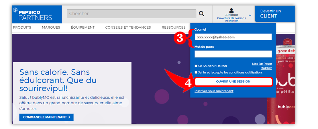 S'il s'agit de votre première connexion, cochez la case « j'ai lu et accepté les conditions d'utilisation »